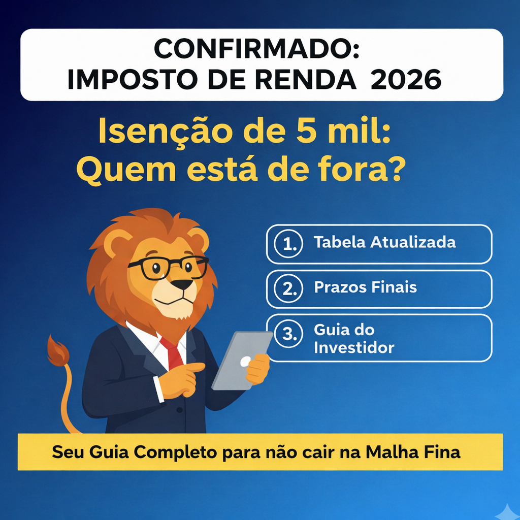 Organização é Lucro, declarar o Imposto de Renda 2026 não precisa ser um pesadelo. Ao entender que a isenção de R$ 5 mil é um avanço para o futuro, mas que o passado exige responsabilidade, você protege seu patrimônio. Lembre-se: a multa por atraso ou não entrega é pesada e pode bloquear seu CPF, impedindo renovação de passaporte, empréstimos e até concursos públicos.Gostou deste guia? Inscreva-se na nossa newsletter para receber alertas semanais sobre o mercado financeiro e dicas de como fazer seu dinheiro render mais!